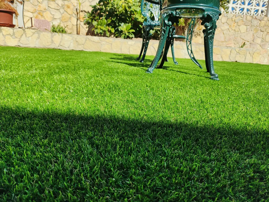 Materiales de alto nivel y protección UV para mantener el tono del césped.